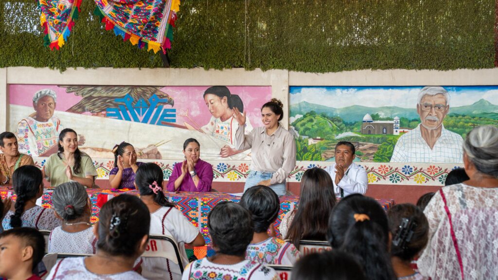 La titular del Instituto Nacional de la Economía Social (INAES), Caty Monreal, anunció la creación de cooperativas para fortalecer la comercialización de artesanías, huipiles y textiles elaborados por la comunidad amuzga.