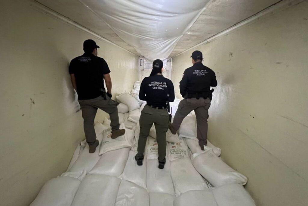 “En Los Mochis, Sinaloa en una acción encabezada por la Agencia de Investigación Criminal de @FGRMexico y el @GabSeguridadMX detuvieron a dos personas por delitos contra la salud, tras asegurar: 320 kg de metanfetamina ocultos en un tractocamión Volvo con caja refrigerada. Con esta acción se evita que miles de dosis de droga lleguen a las calles”, explicó García Harfuch.