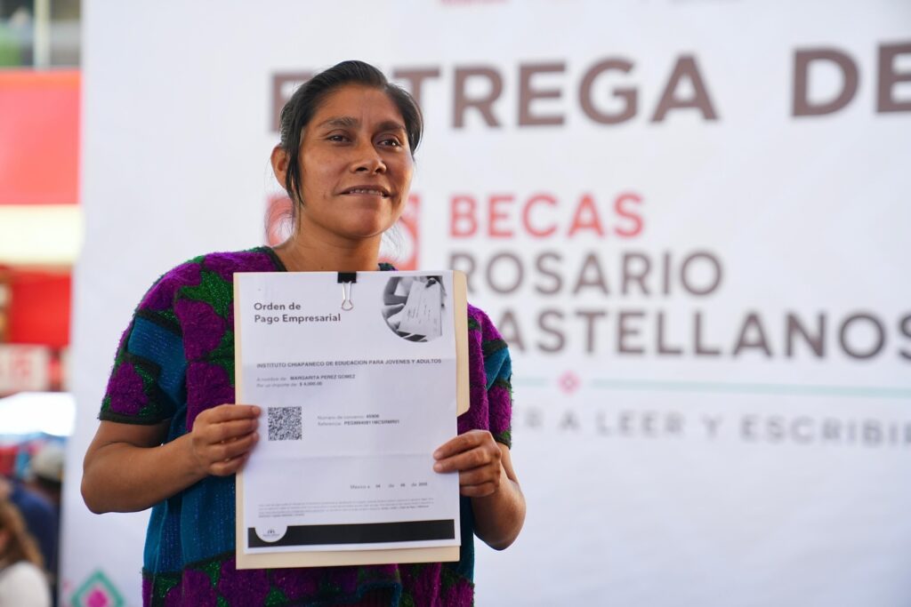 Además, se entregaron beneficios del programa Conecta Chiapas y se impulsaron las becas Rosario Castellanos, que brindan oportunidades a mujeres para aprender a leer y escribir, fortaleciendo su inclusión y desarrollo personal.