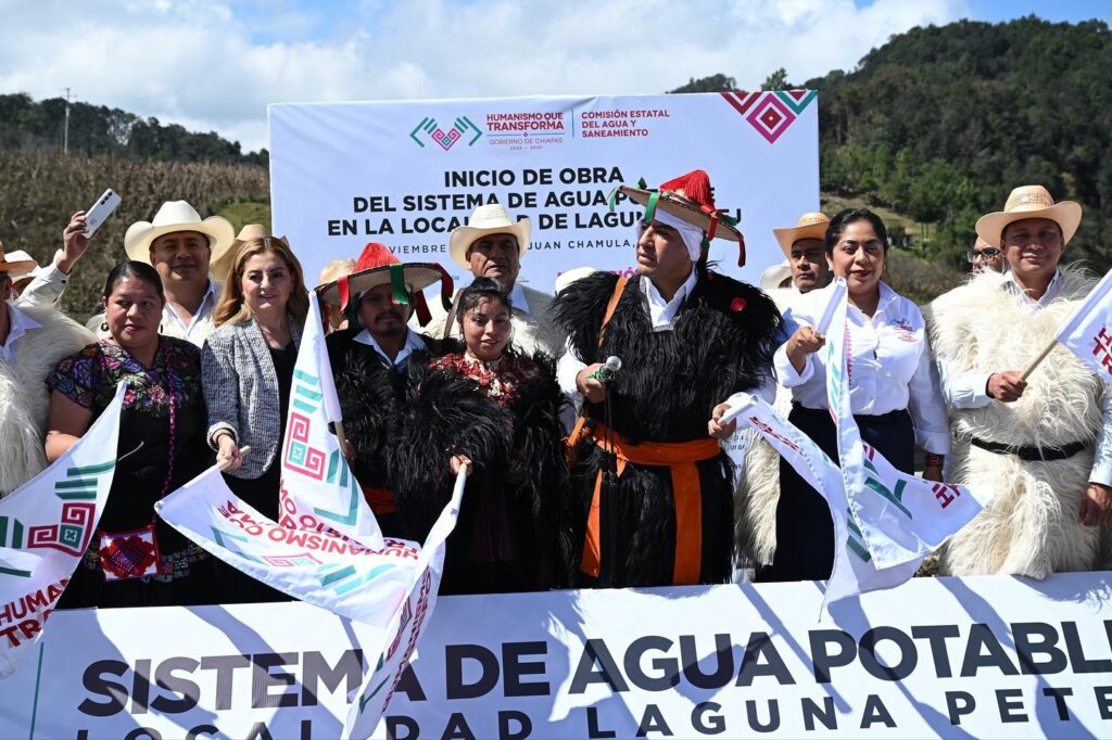 El gobernador de Chiapas, Eduardo Ramírez Aguilar, encabezó el inicio de la construcción del Sistema de Agua Potable en la localidad Laguna Petej, un proyecto que beneficiará a cerca de mil habitantes y cuya inversión supera los 12 millones de pesos.