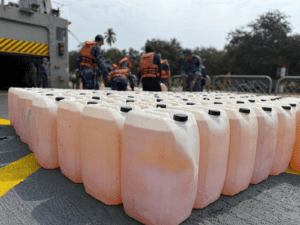 Elementos de la Secretaría de Marina (Semar) aseguraron 314 litros de precursores químicos durante un operativo de inspección en el...