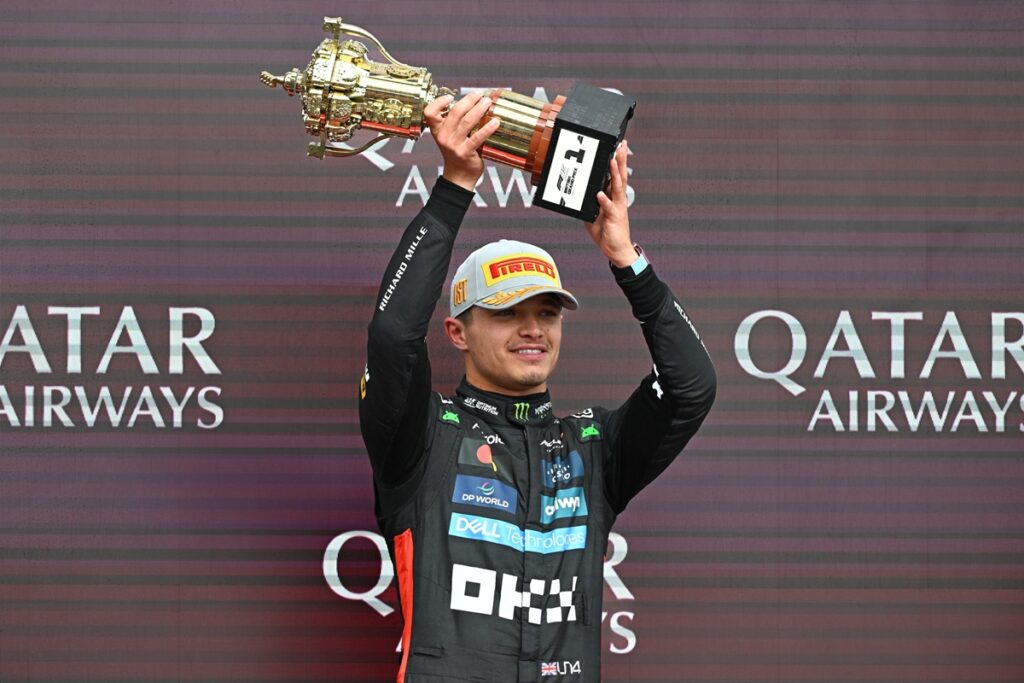 A medida que las condiciones cambiaron y los pilotos comenzaron a cambiar a neumáticos lisos más tarde, Piastri cumplió su penalización durante su parada en boxes y Norris tomó el liderazgo de la carrera; y desde allí Norris mantuvo su ventaja para sellar la victoria frente a una multitud entusiasta, cruzando la línea 6.812 segundos por delante de Piastri.