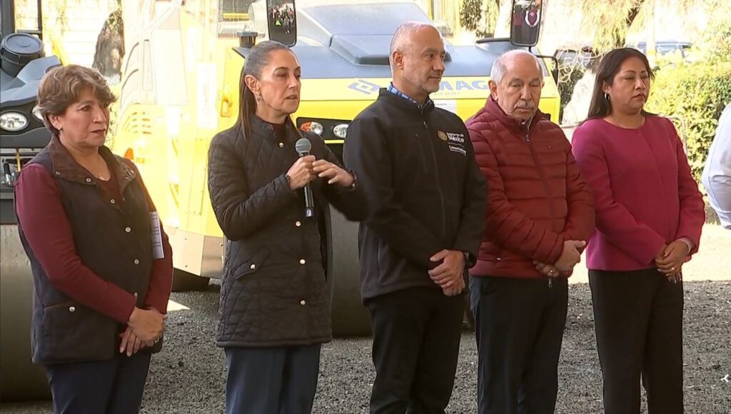 Como parte del Plan Integral para el Oriente del Estado de México, este viernes 19 de diciembre, la presidenta de México, Claudia Sheinbaum Pardo, acompañada por la gobernadora mexiquense, Delfina Gómez Álvarez, encabezó la entrega de cuatro trenes de pavimentación a los municipios de Chalco, Chimalhuacán, Valle de Chalco y Tlalnepantla.