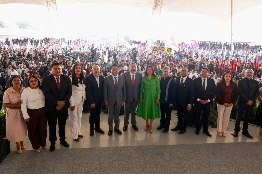 Ante más de 20 mil asistentes reunidos en el Recinto Ferial, la presidenta municipal Xóchitl Flores Jiménez rindió su primer informe de gobierno, acompañada por figuras clave del ámbito estatal y federal, quienes destacaron el avance de los proyectos de transformación en el municipio.