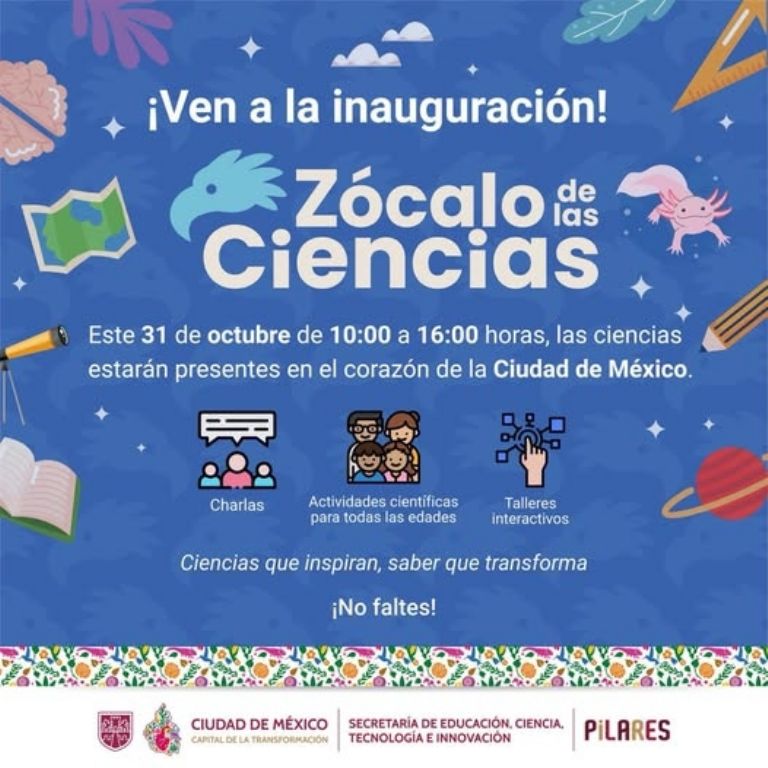El evento Zócalo de las Ciencias inicia este viernes 31 de octubre en la capital mexicana, con entrada libre, y se realizará mensualmente los viernes de Consejo Técnico Escolar.